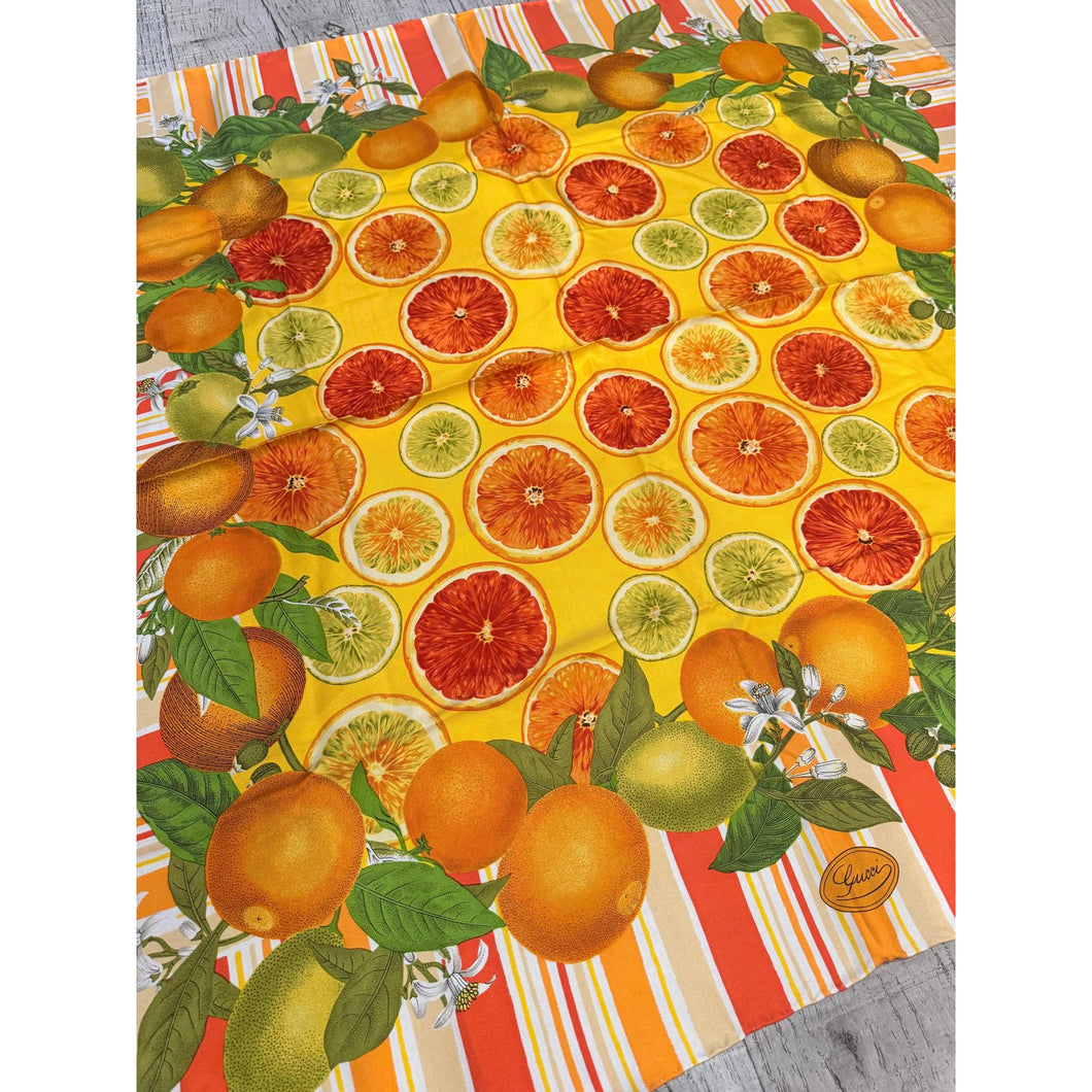 Gucci Authentic Vintage Designer Headscarf, Citrus Botanical