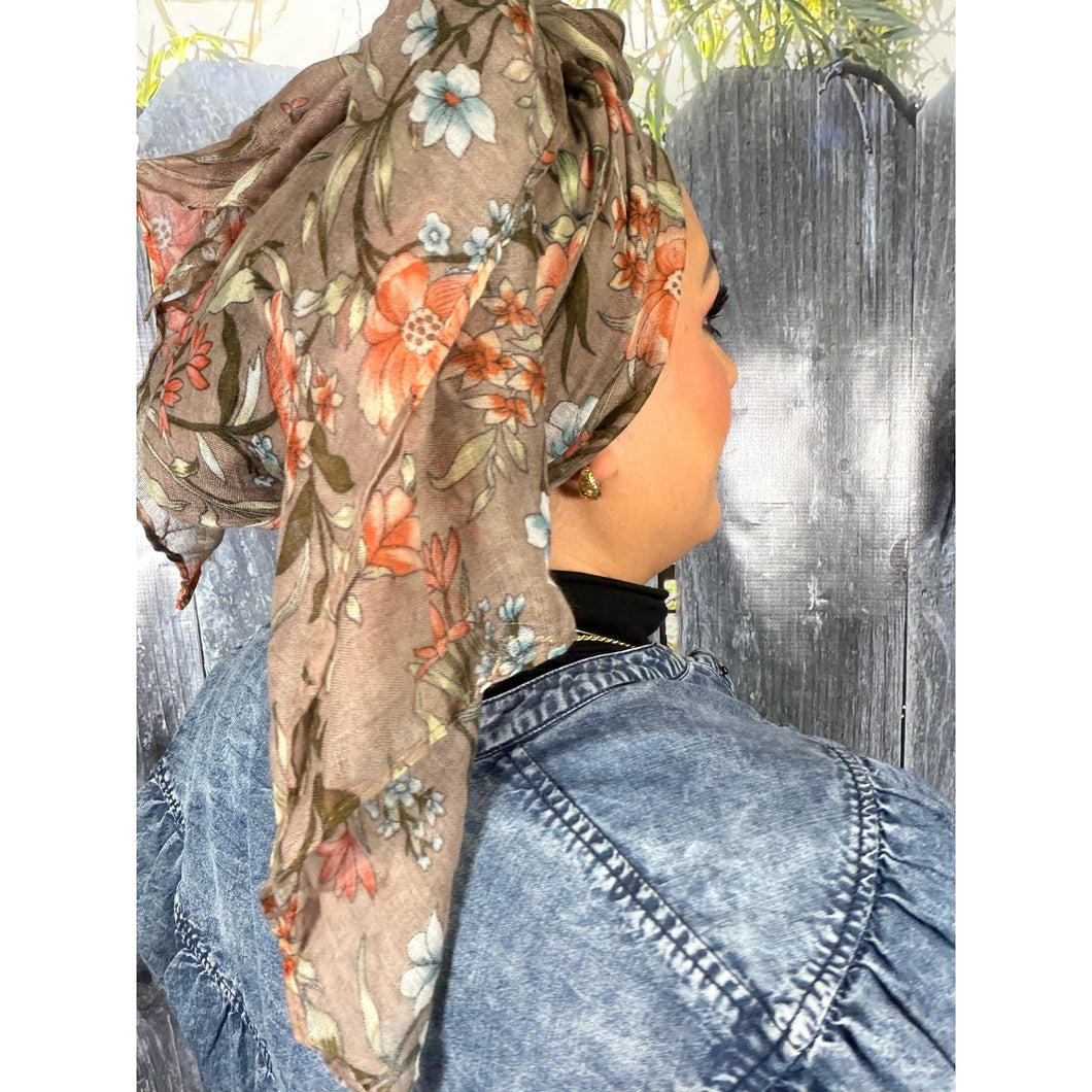 The floral print adds a soft, feminine touch while remaining versatile enough to pair easily with a wide range of outfits. Each wrap works beautifully on its own, or layered with essentials underneath. Many women find it stays comfortably in place with little to no grip, especially when styled as a turban, but it also pairs seamlessly with velvet headbands or other underpieces if desired.