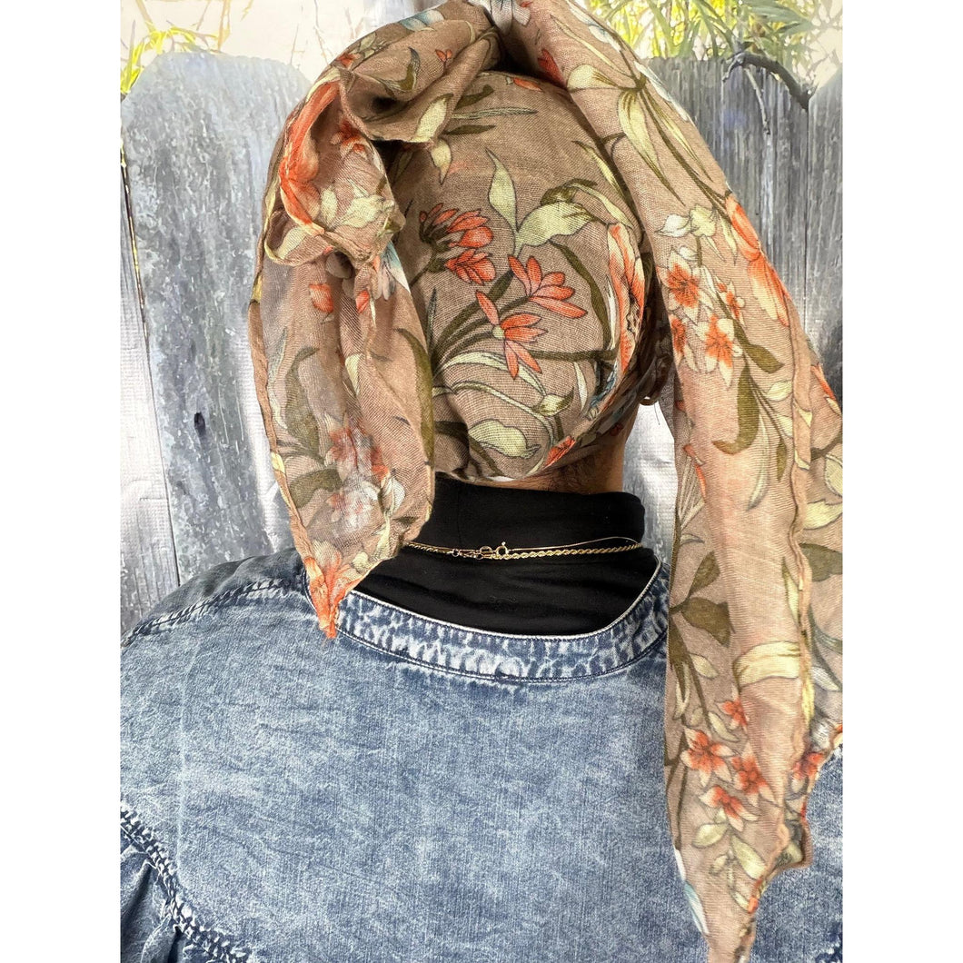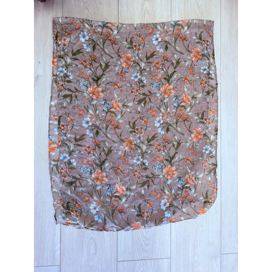 Israeli Gauzy Floral Wrap - Neutral