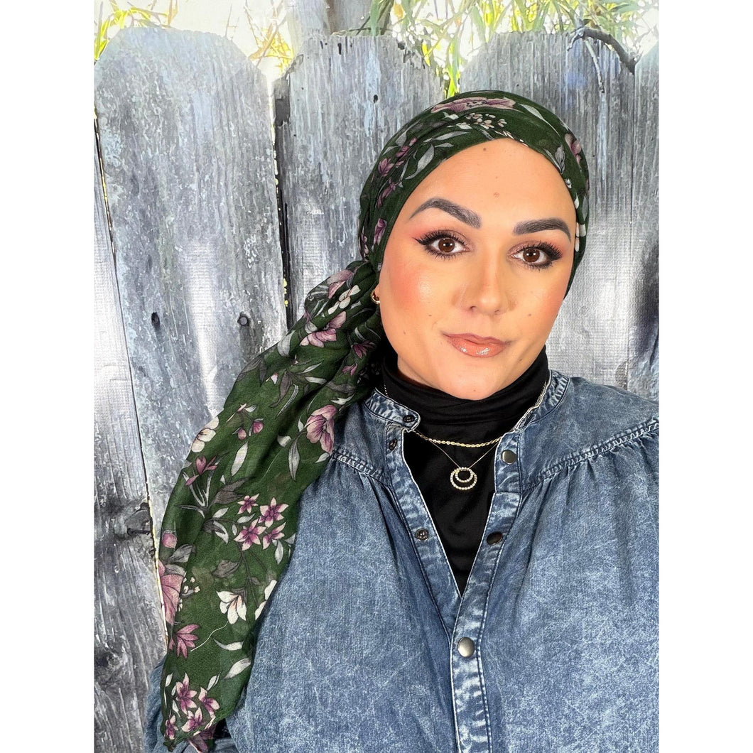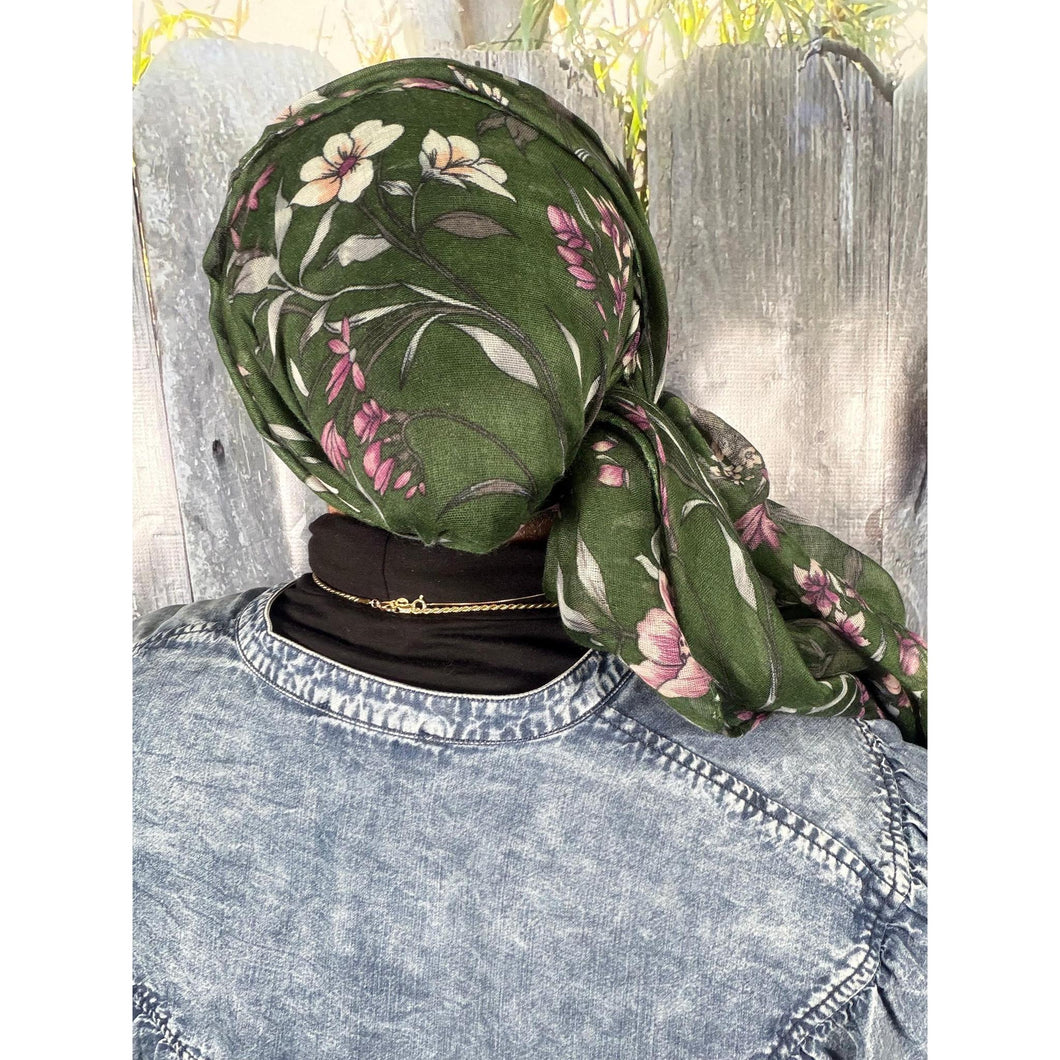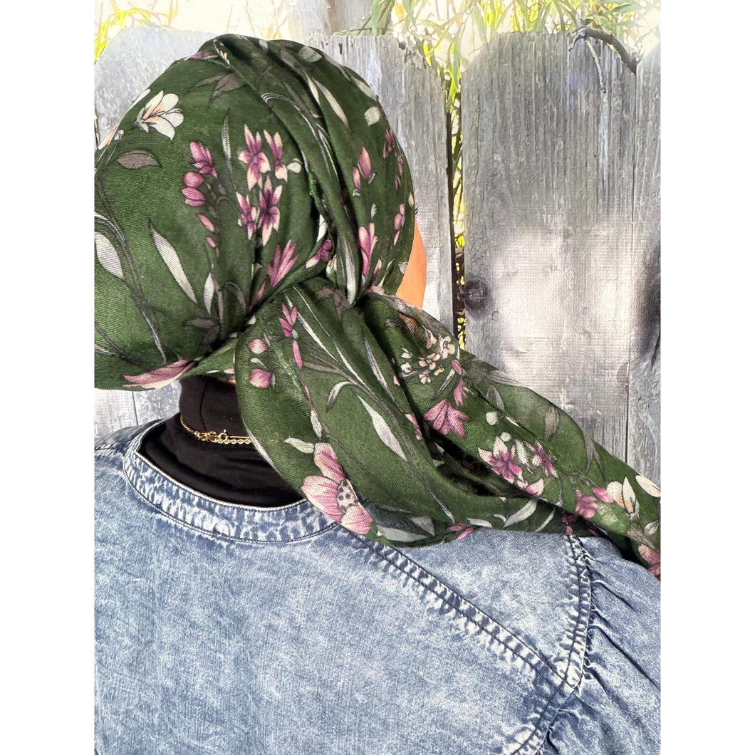 Israeli Gauzy Floral Wrap - Green