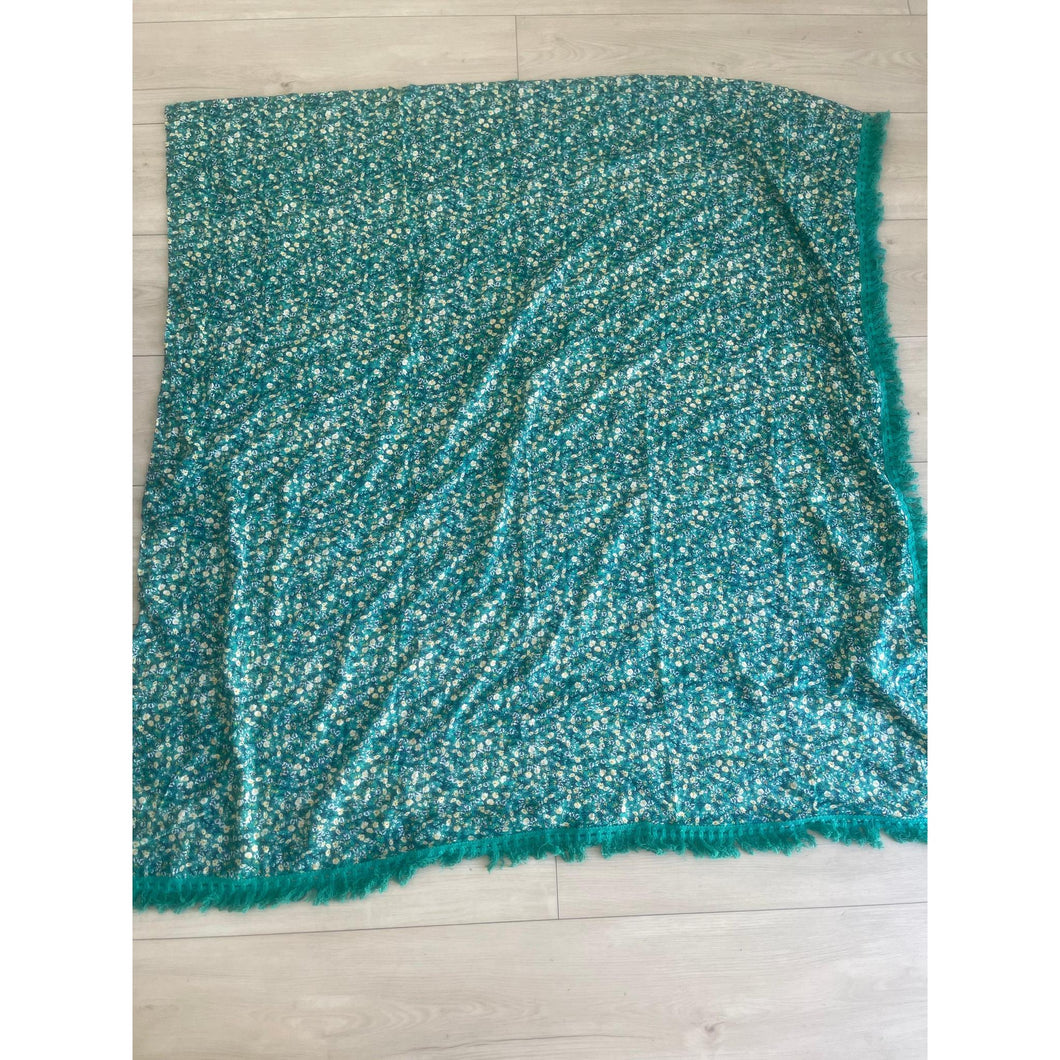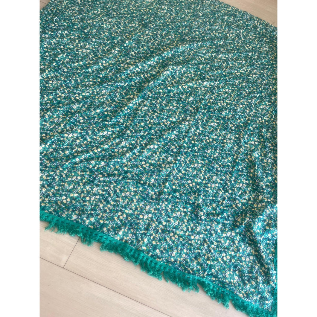 Israeli Tassel Embroidered Very Large Square - Teal Floral