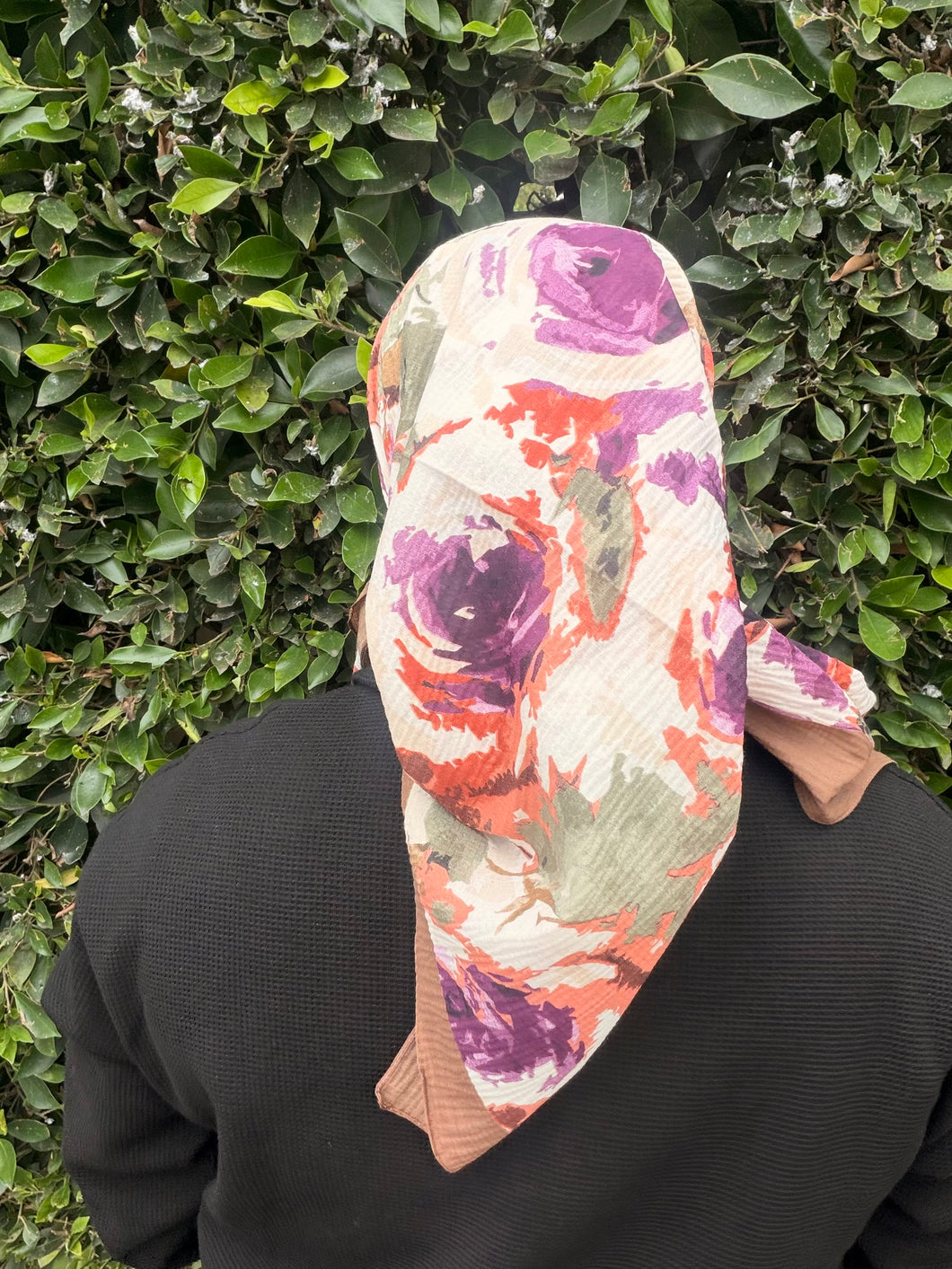 Spiced Petals Waffle Print Square Tichel - Purple/Neutral