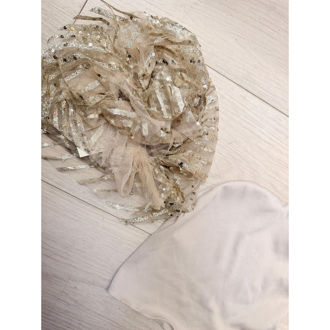 The beaded plus sequins details and exquisite craftsmanship of the fabric add to the finished look, nobody would ever guess that you did little to nothing to wear this piece. The matching scrunchie adds to the finished look.