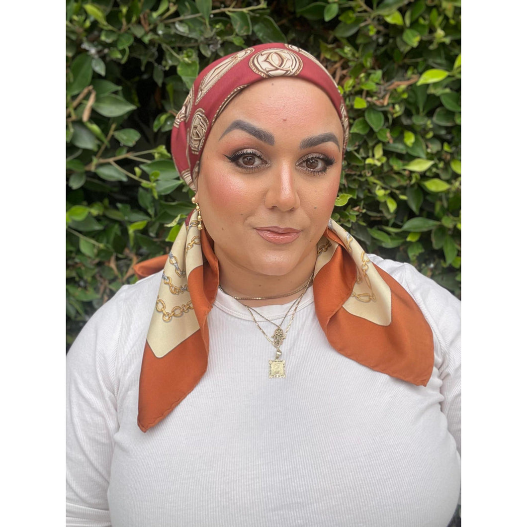 Elevate your headcovering collection with our curated selection of authentic designer silk scarves from high-end fashion houses. Each piece is made from luxurious, high-quality silk, offering timeless beauty, elegance, and versatility.