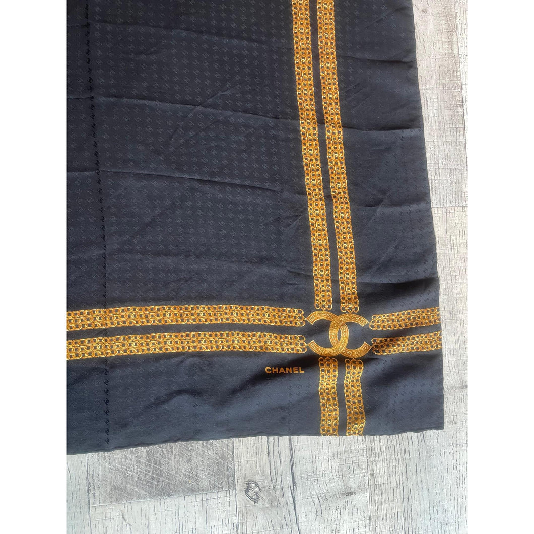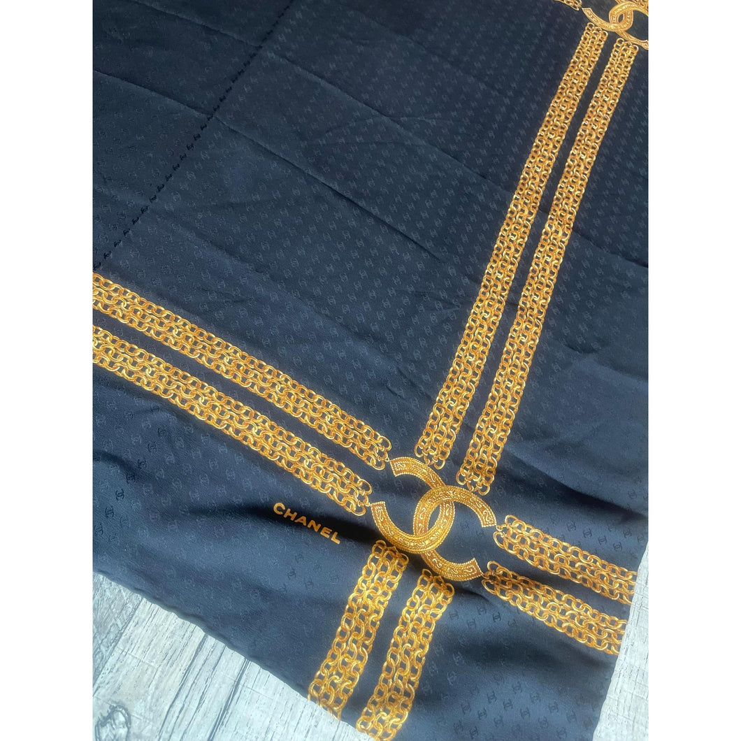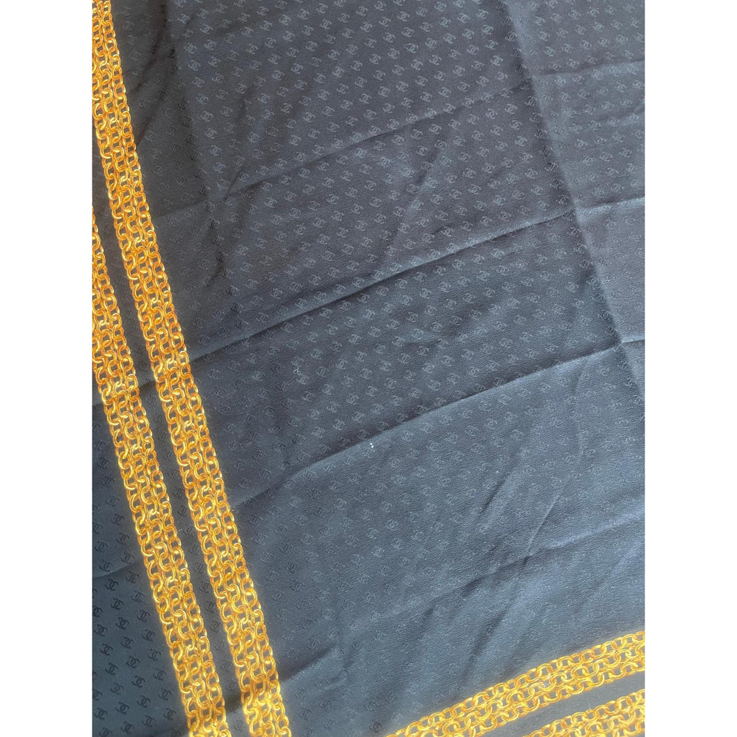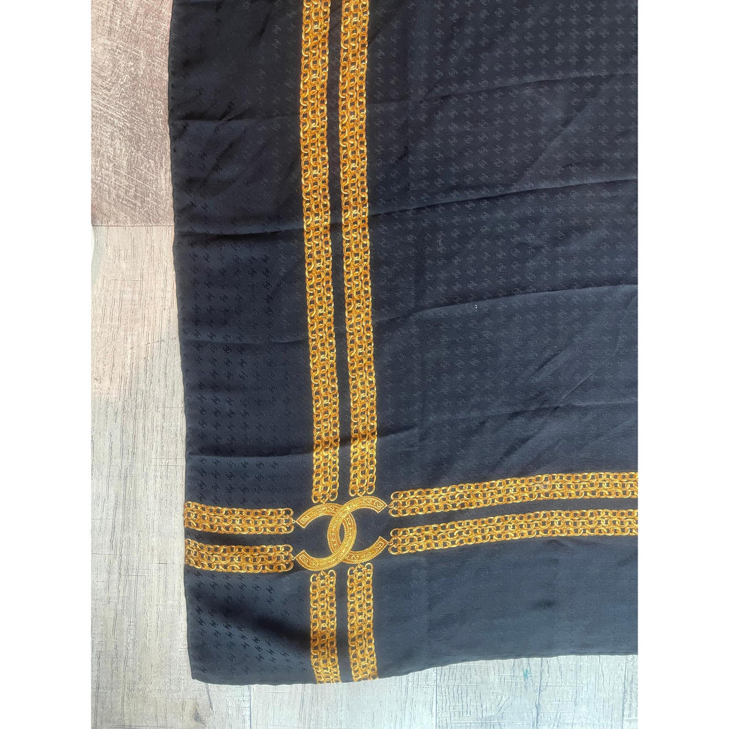 Chanel Authentic Vintage Designer Headscarf, Black & Gold Chain Link