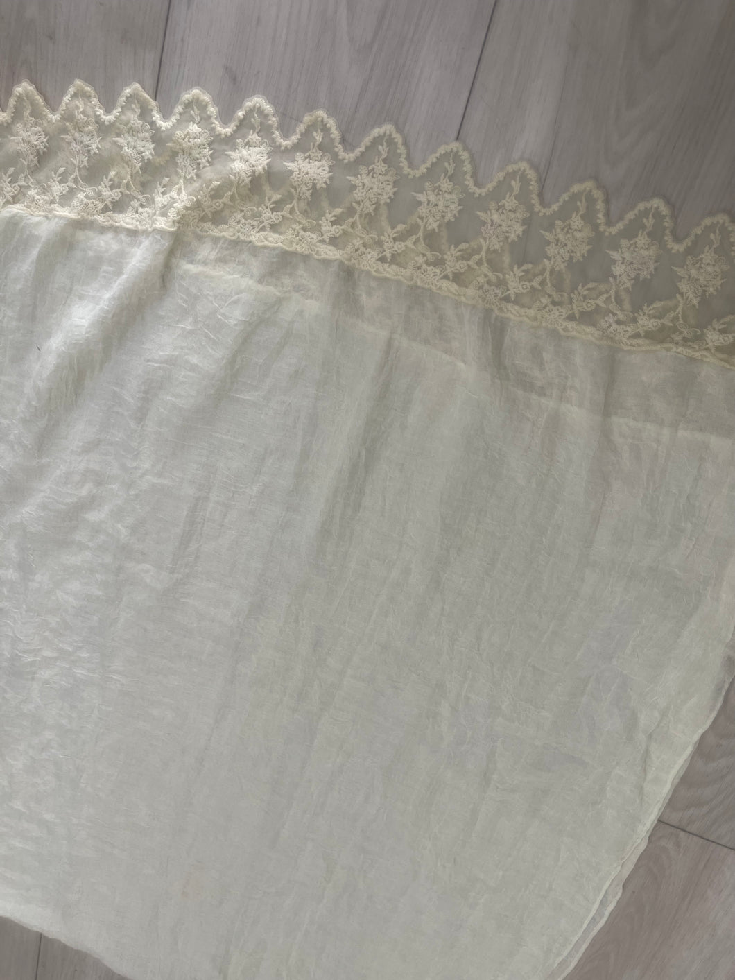 Meet our newest addition, the Israeli Arabesque wrap. This long, rectangular headwrap features an airy woven fabric with a naturally crinkled finish that adds effortless charm to any wrap style. Delicately embroidered scalloped lace adorns both ends, creating a stunning drape effect when tied or left to cascade down. The wrap’s generous width allows you to achieve beautiful volume even without a shaper, while adding a shaper or bobi underneath can create extra height and drama. Each color features a softly faded effect, with subtle shifts in tone that give the fabric depth and an elegant, lived-in beauty. Lightweight, breathable, and easy to style, The Arabesque Wrap is perfect for effortless everyday elegance or an elevated evening look.