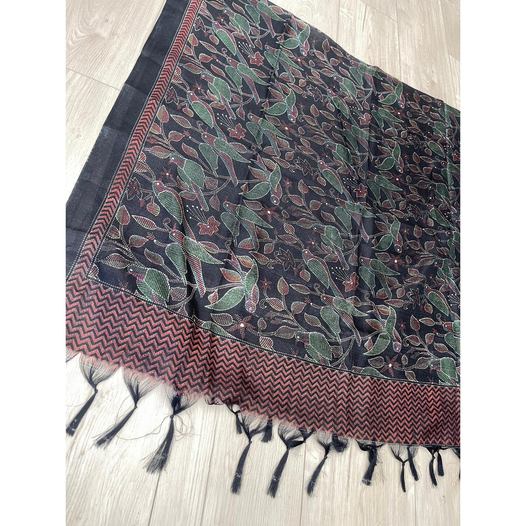 Jubilee Print Wrap w/ Tassel Details - Noire Songbird-Long Wrap-The Little Tichel Lady
