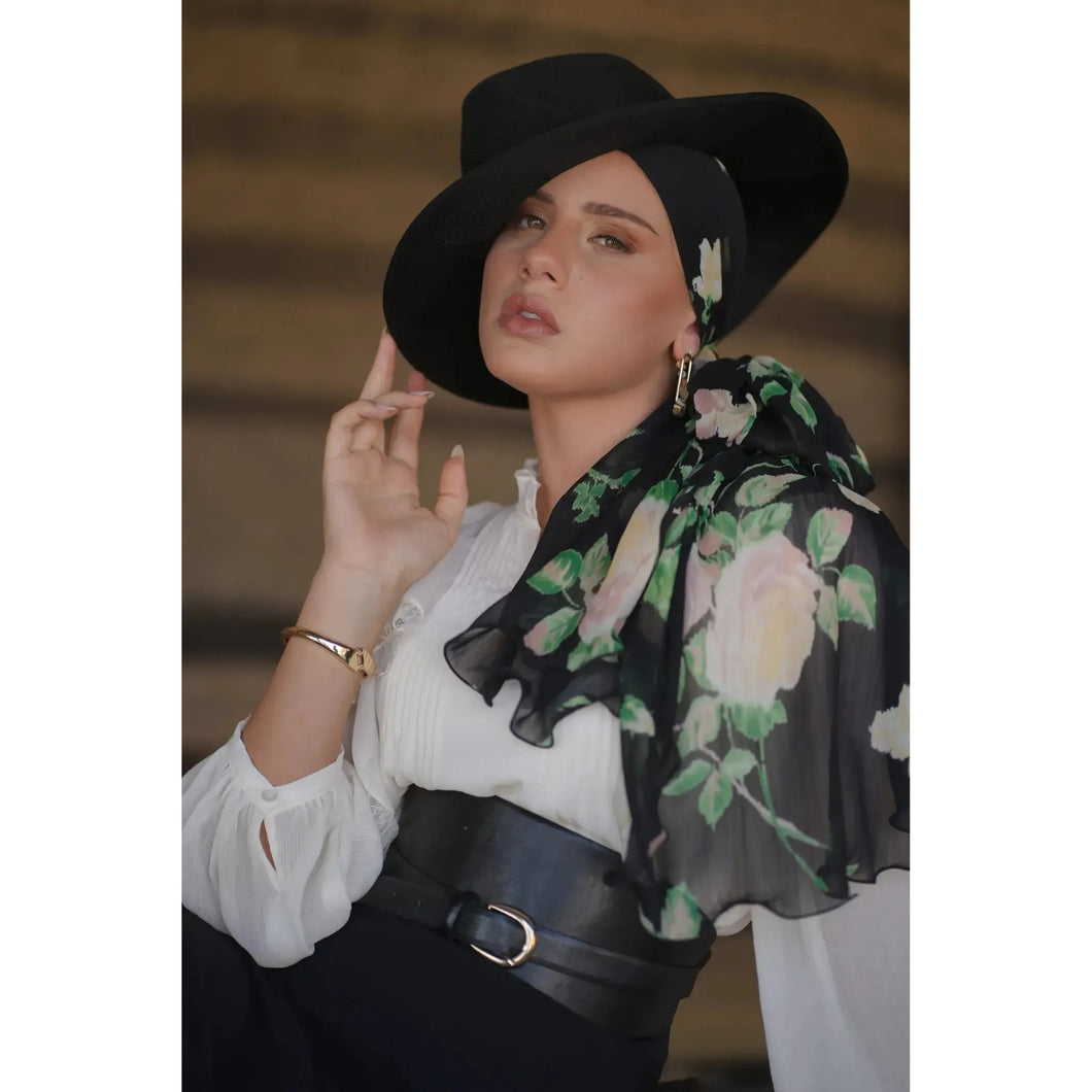 Another hit from Rinati Lakel is the Yom Yom, it's a shorter length wrap that comes with a matching "chu chu" aka scrunchy. There are multiple ways to style these pieces and the scrunchy adds an interesting texture and twist to the mix.