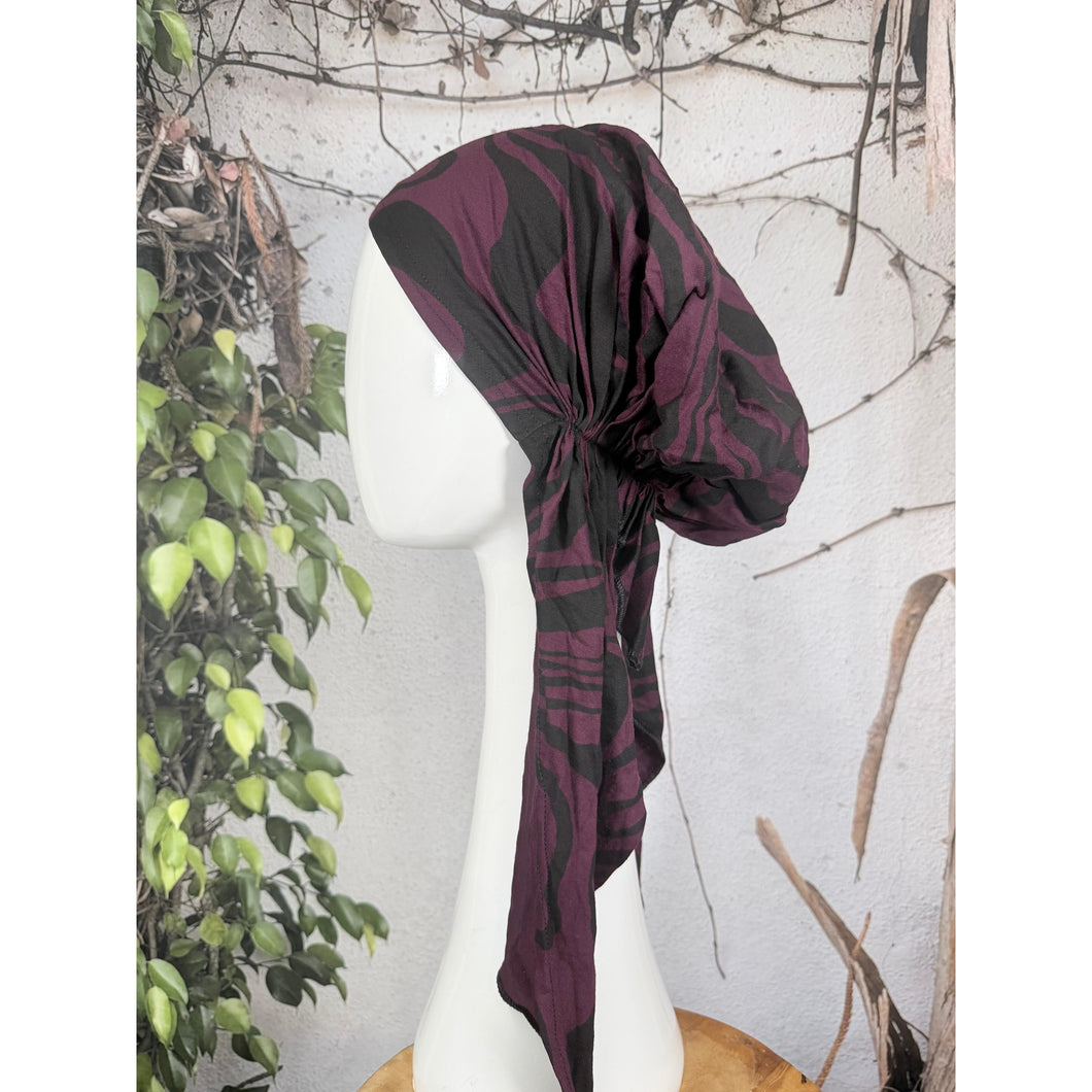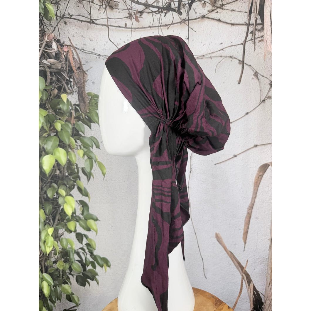 Stretchy Pretied Tichel - Eggplant/Black