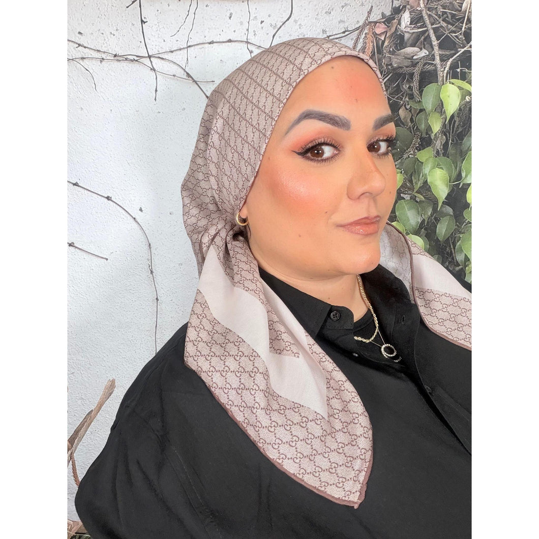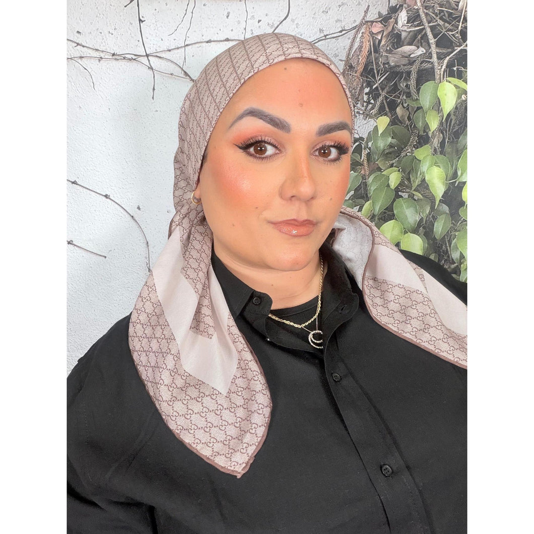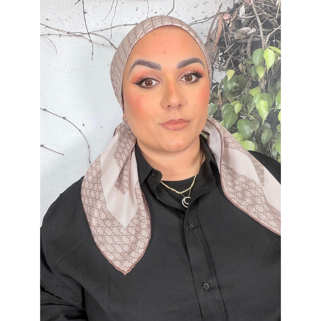 Classic Inspired G Print Square - Brown-Squares-The Little Tichel Lady