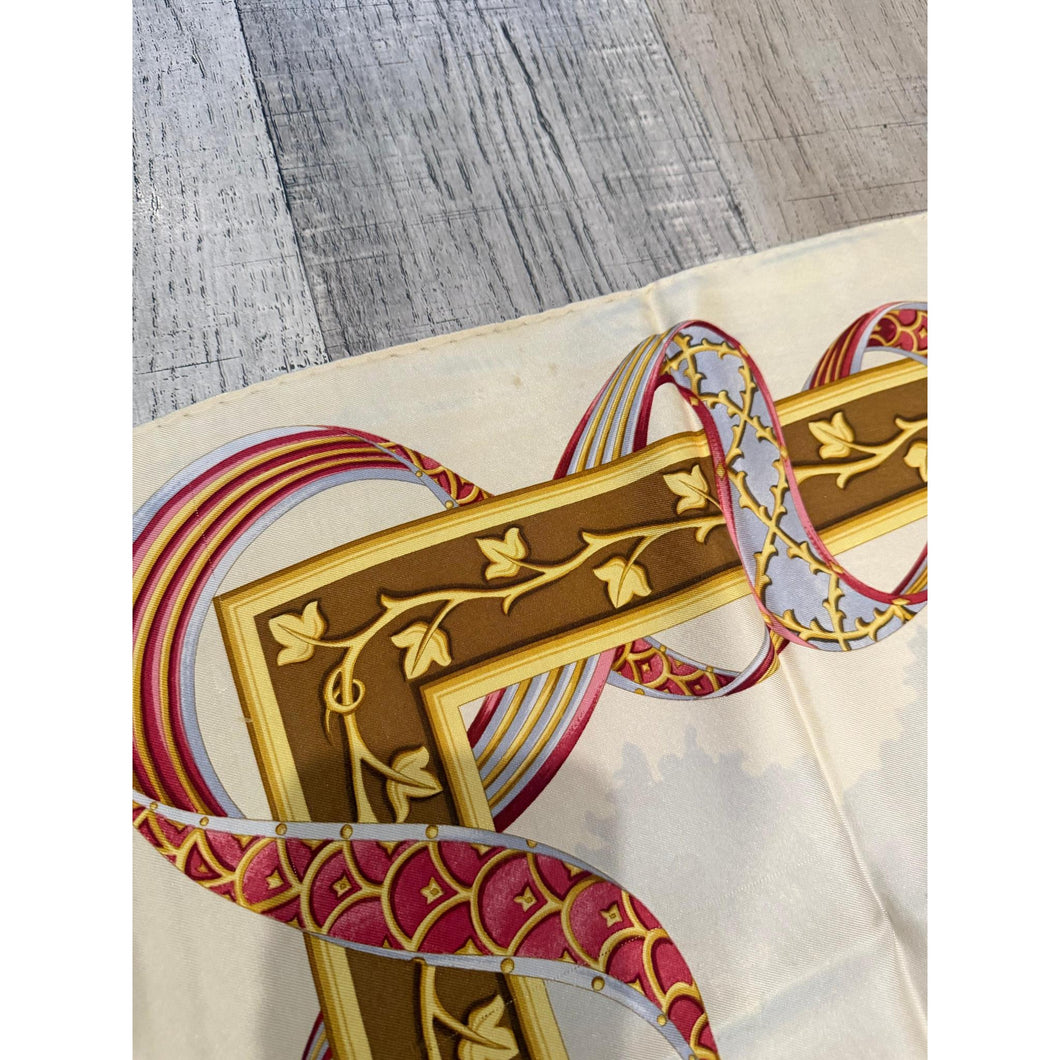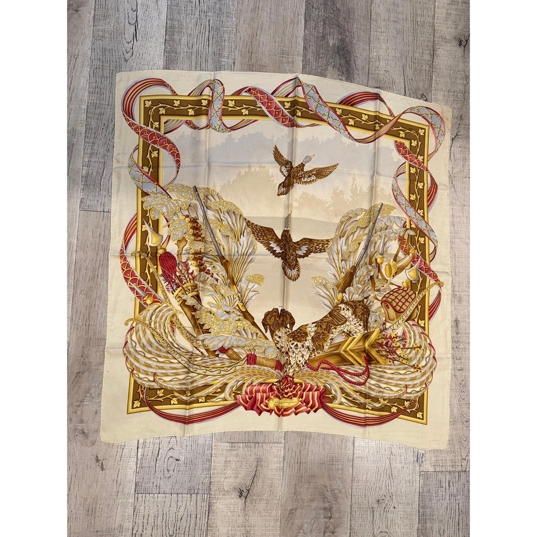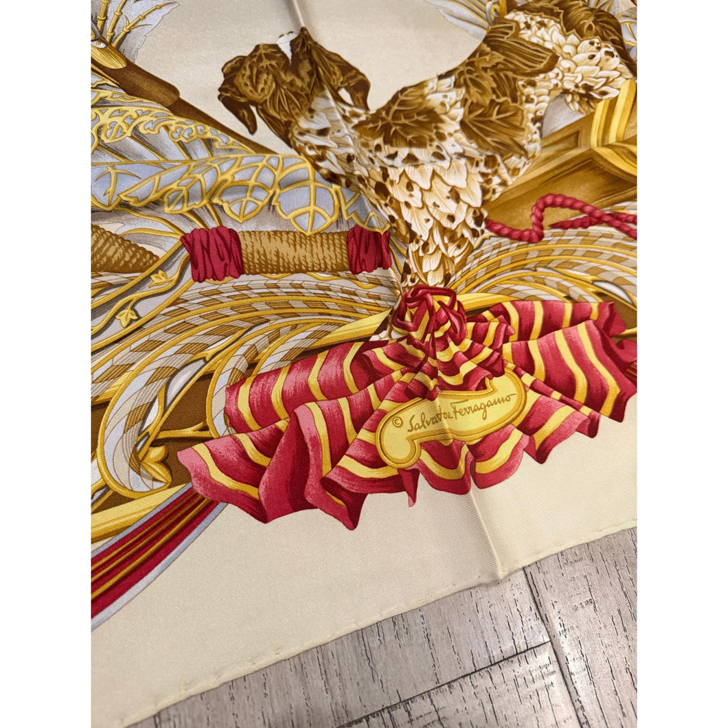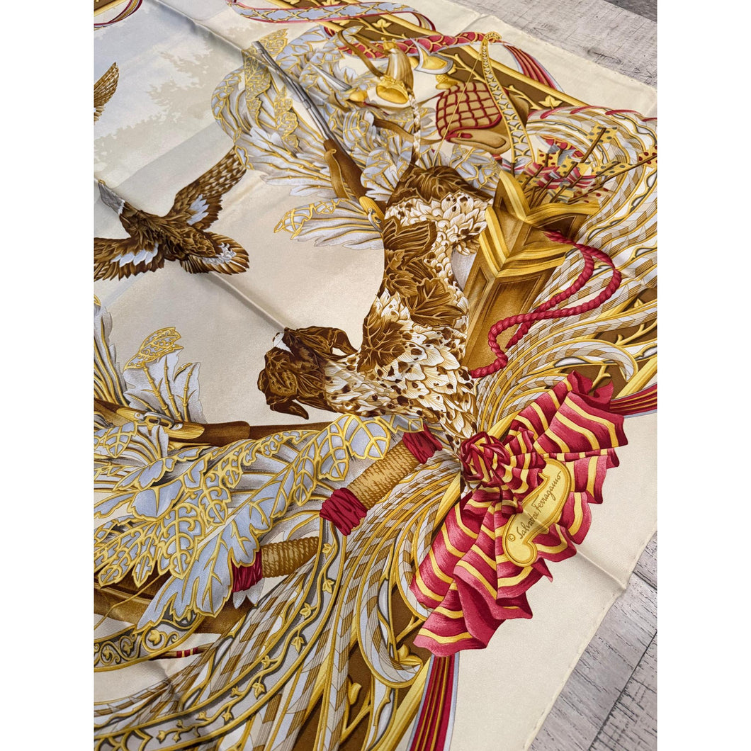 Ferragamo Authentic Vintage Designer Headscarf, Neutral Birds