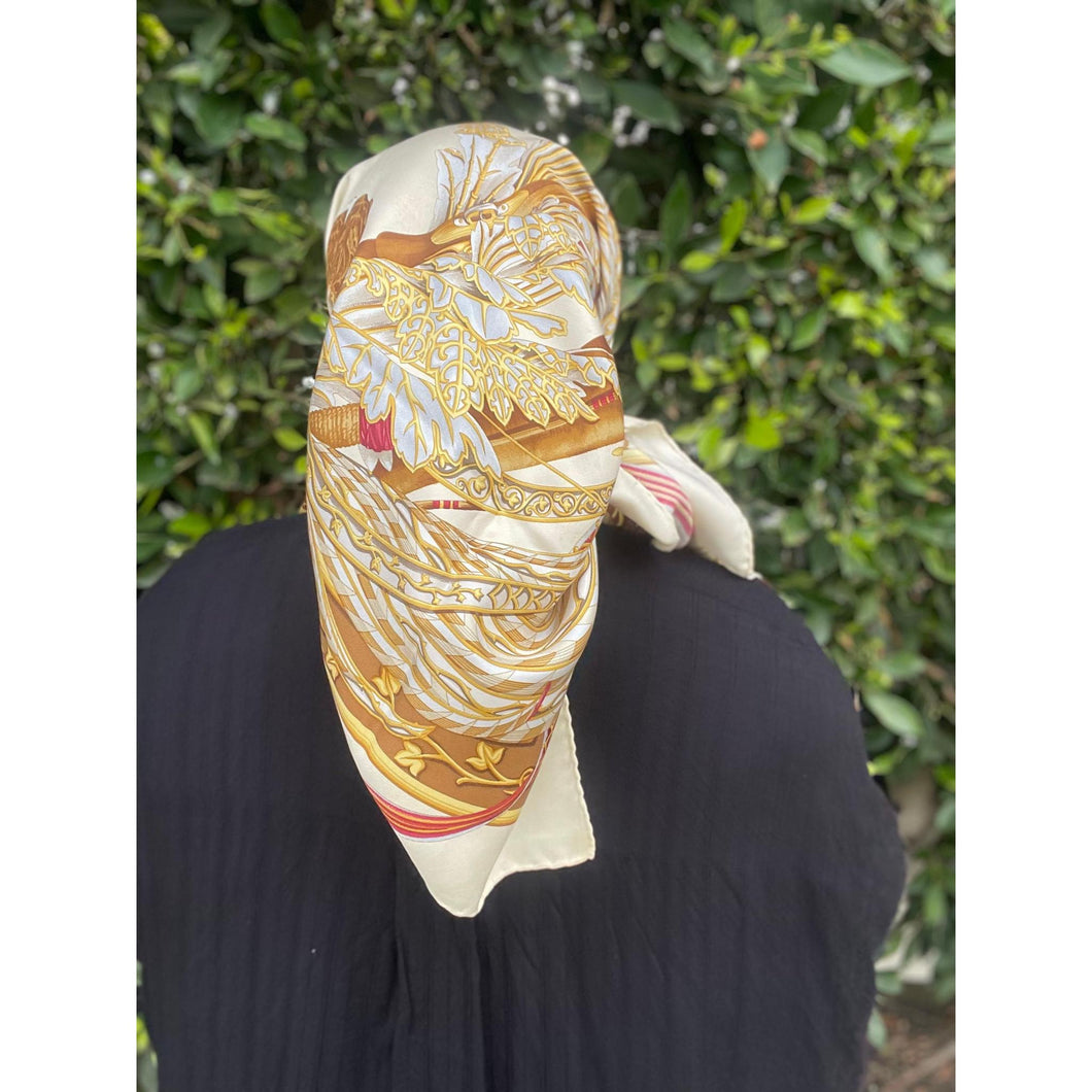 Ferragamo Authentic Vintage Designer Headscarf, Neutral Birds-Designer headscarf-The Little Tichel Lady