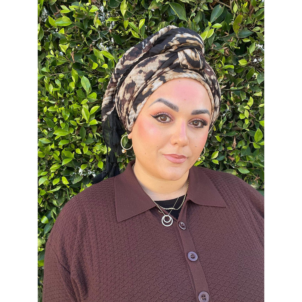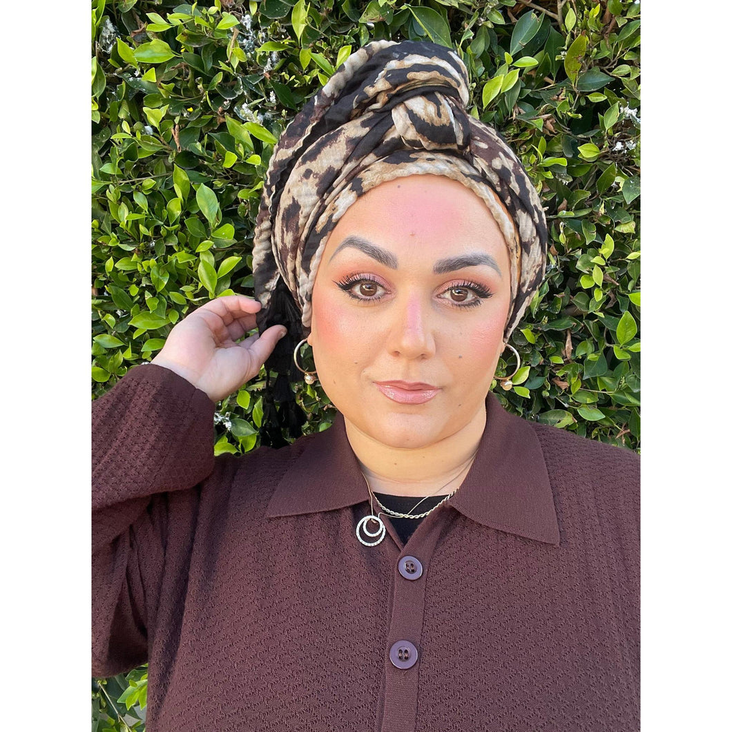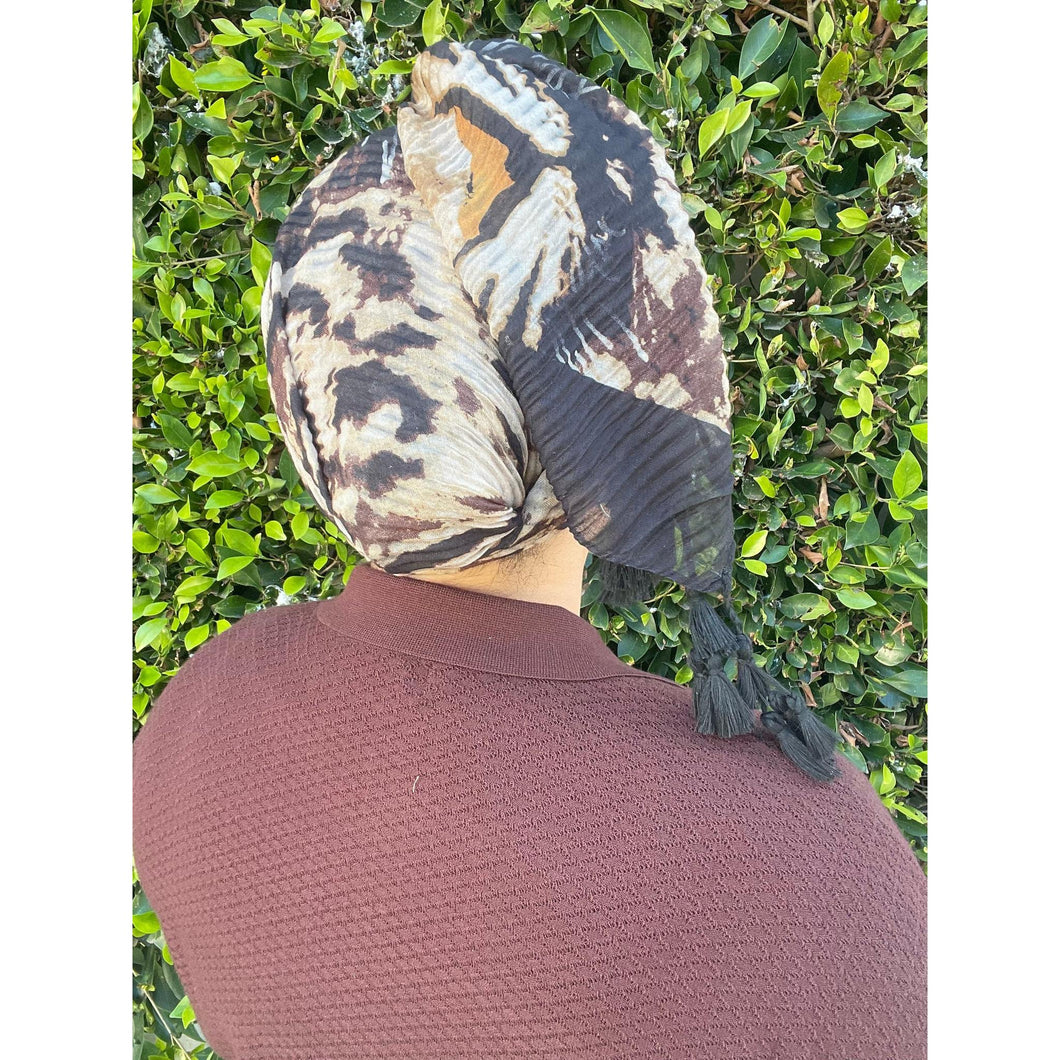 Cozy Israeli Print Headwrap + Tassel Details - Neutral Print