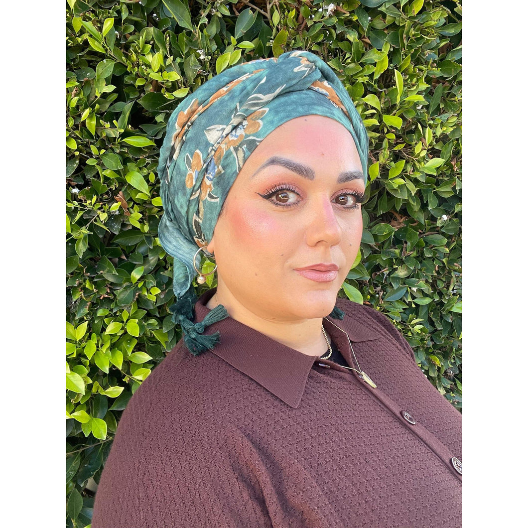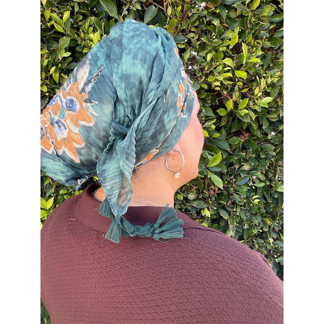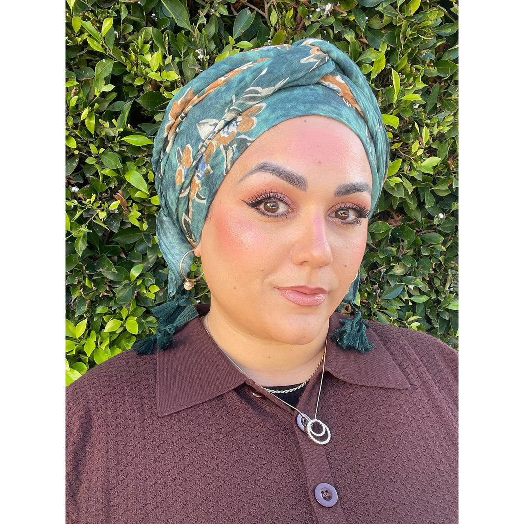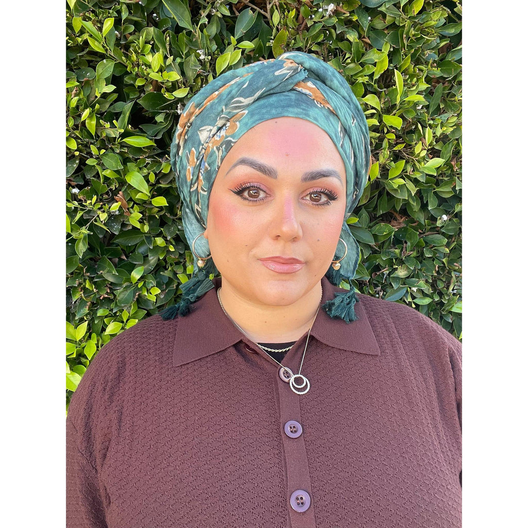 Cozy Israeli Print Headwrap + Tassel Details - Tie-Dye Floral