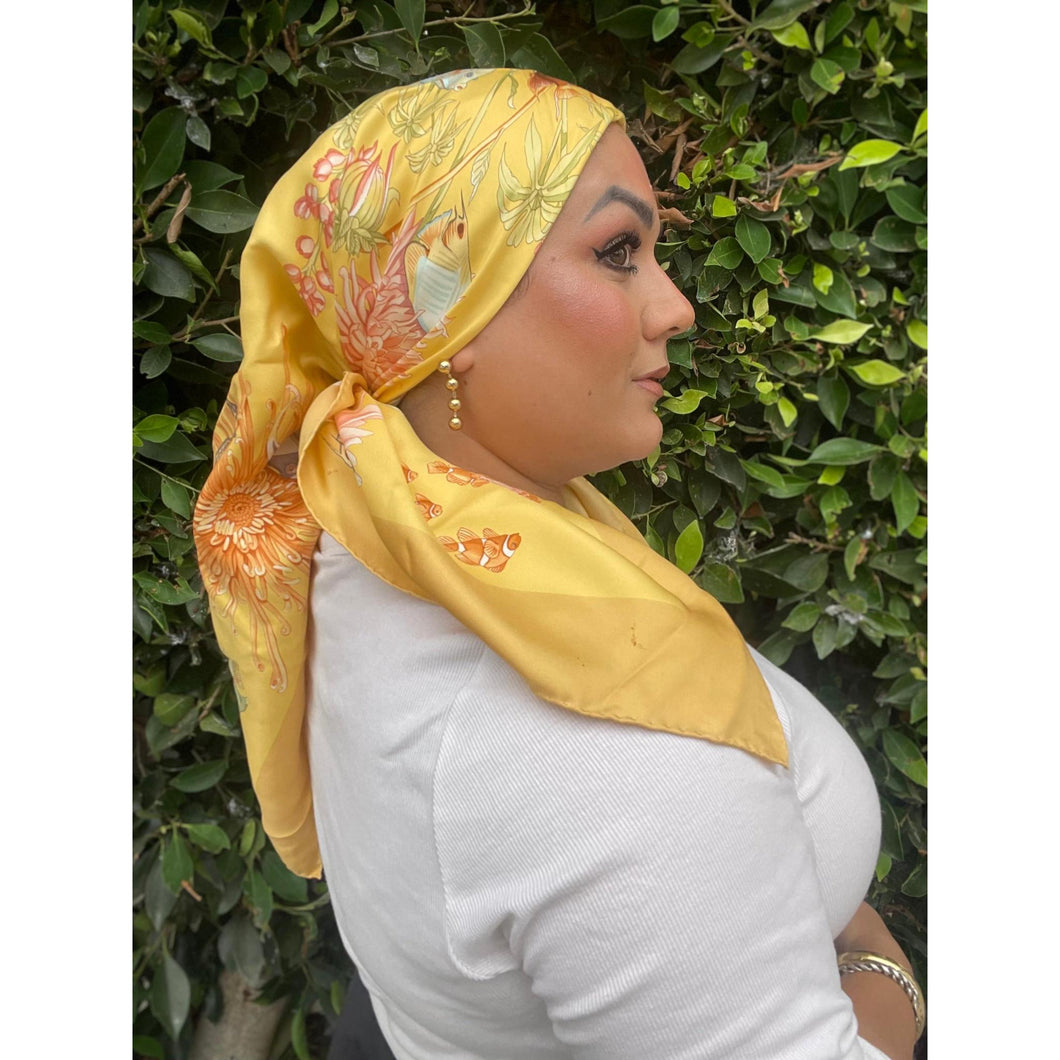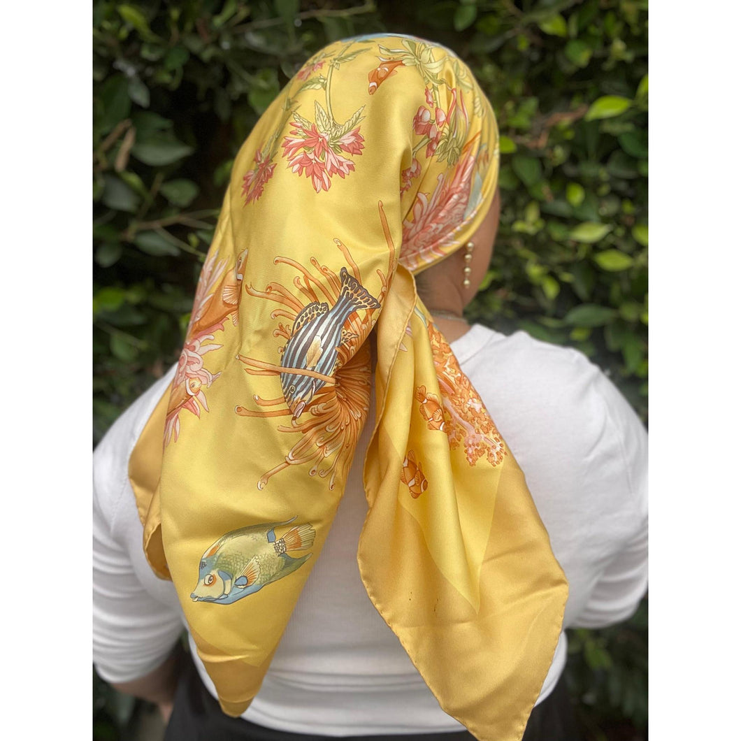 Ferragamo Authentic Vintage Designer Headscarf, Under The Golden Sea