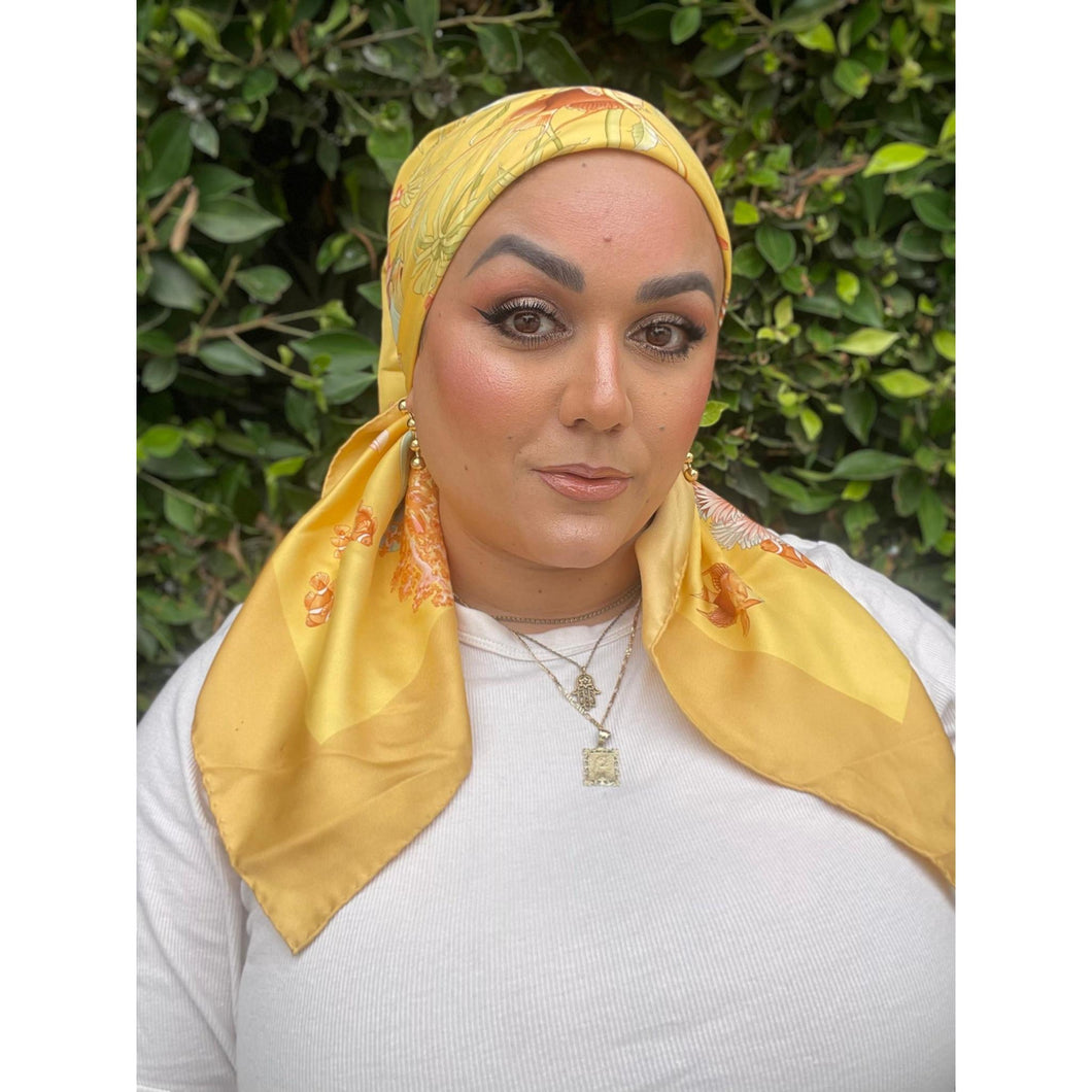 Elevate your headcovering collection with our curated selection of authentic designer silk scarves from high-end fashion houses. Each piece is made from luxurious, high-quality silk, offering timeless beauty, elegance, and versatility.