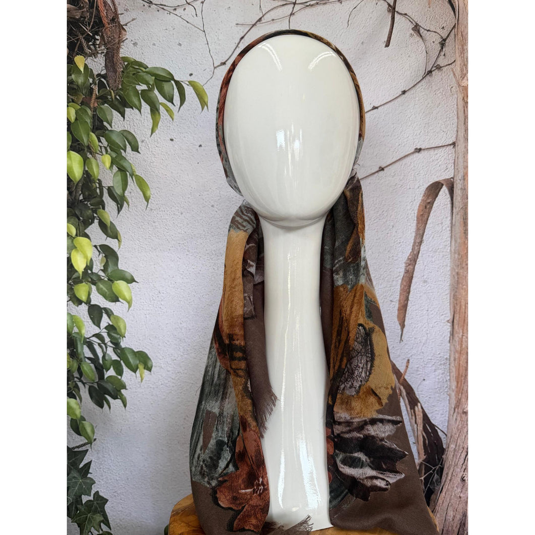 Turkish Cotton Textured NON-SLIP Print Pretied w/ Long Tails - Earthy/Neutral