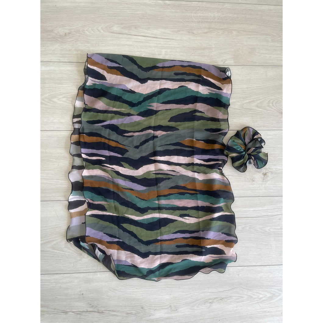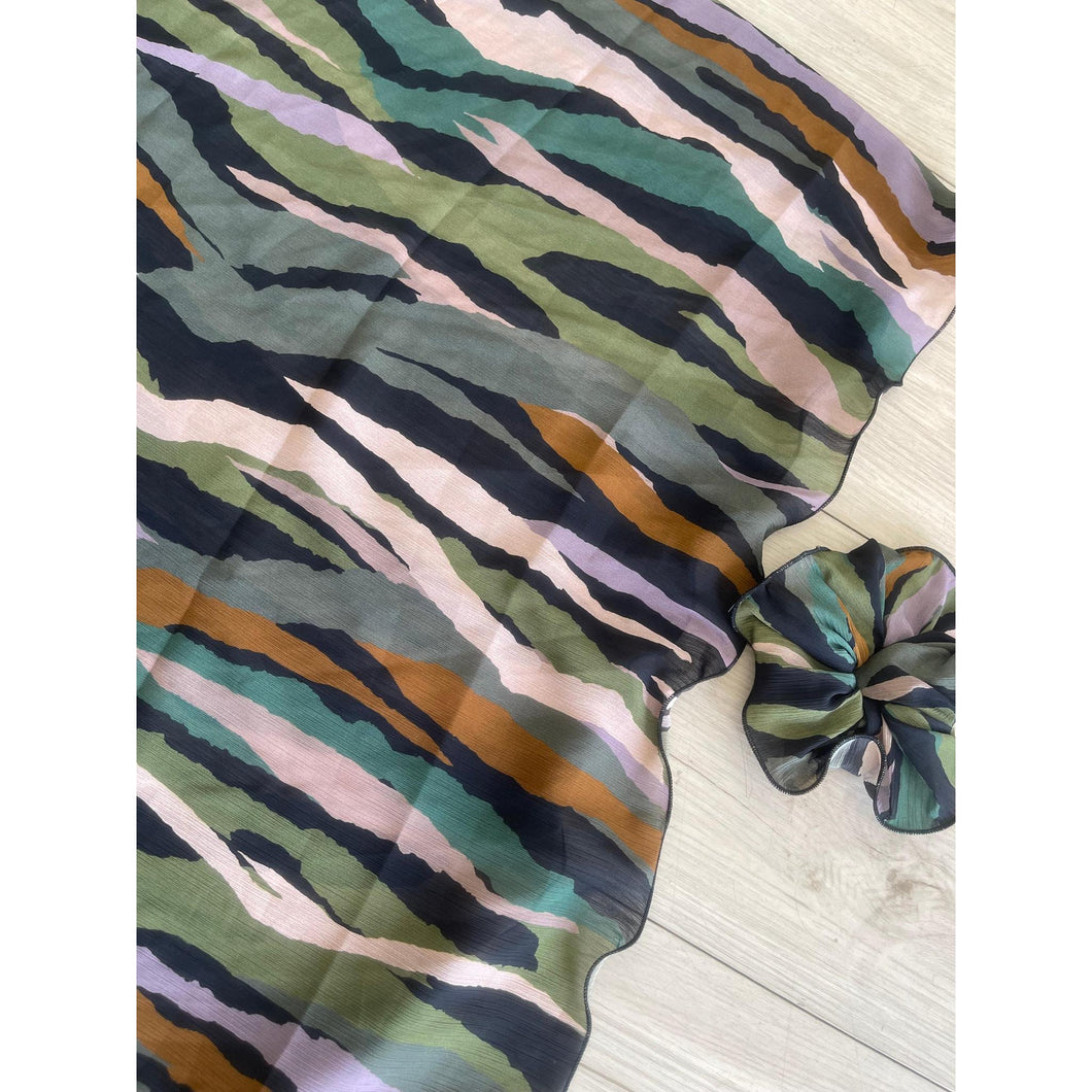 Another hit from Rinati Lakel is the Yom Yom, it's a shorter length wrap that comes with a matching "chu chu" aka scrunchy. There are multiple ways to style these pieces and the scrunchy adds an interesting texture and twist to the mix.