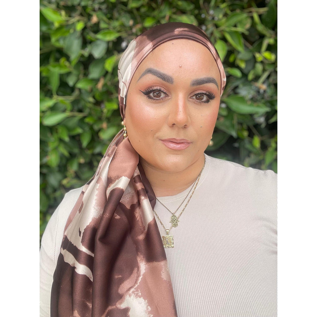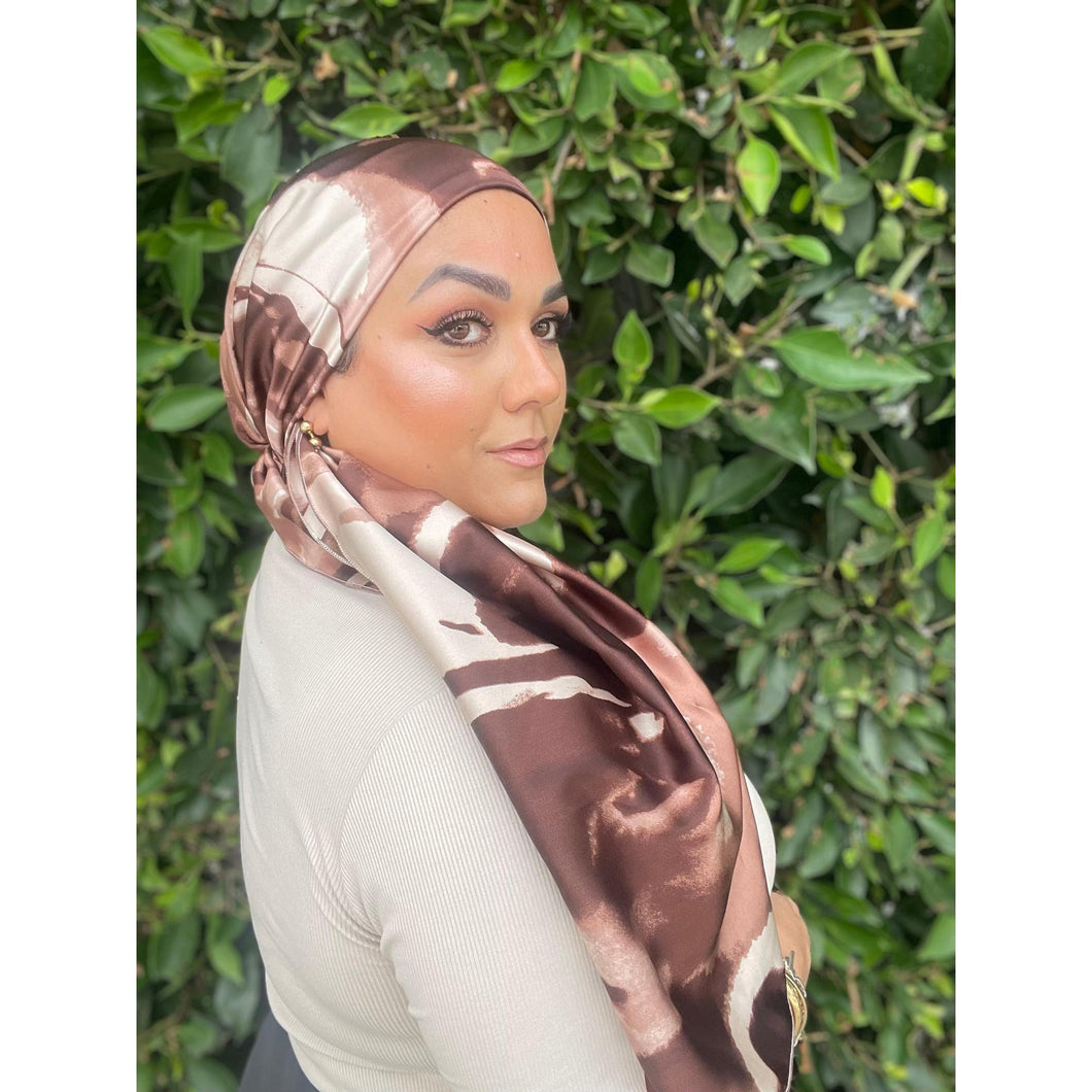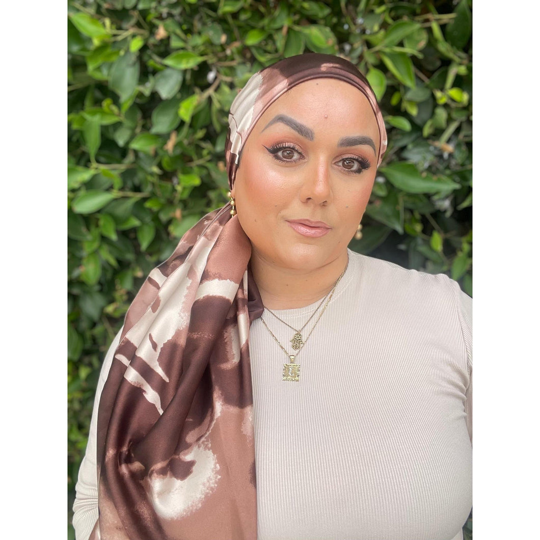 The Yomi from Rinati Lakel is a headscarf that has two places where the two sides of the wrap connect with each other creating a "pocket" for the head to fit into.