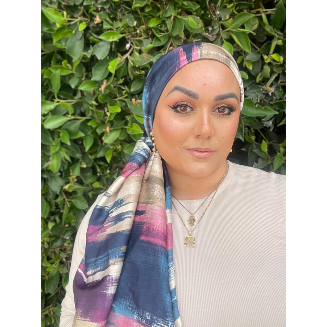 The Yomi from Rinati Lakel is a headscarf that has two places where the two sides of the wrap connect with each other creating a "pocket" for the head to fit into.